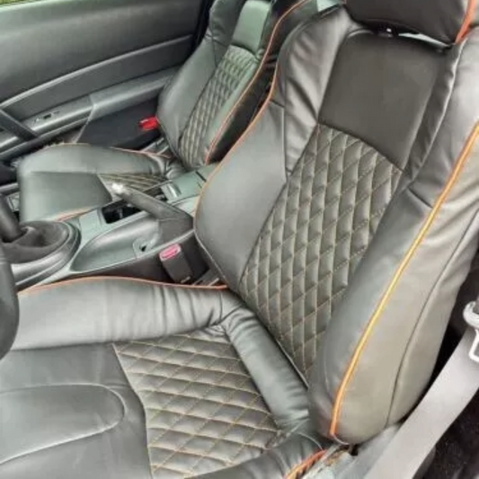 Nissan 350Z Seat Covers | 2003-2008 | Black | Orange Piping | Diamond