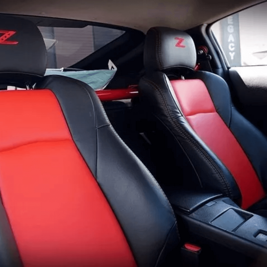 Upgrade your Nissan 350Z with our exclusive collection of Full Leather Seat Covers, custom-fit for each model year from 2003 to 2008. Crafted from high-quality materials available in faux leather, genuine leather, and Nappa leather, these replacement covers are designed to enhance both the comfort and aesthetics of your vehicle's interior. Each set includes driver and passenger seat covers, ensuring a complete transformation. Opt for our seat covers to protect your seats, increase resale value, and enjoy a luxurious driving experience.